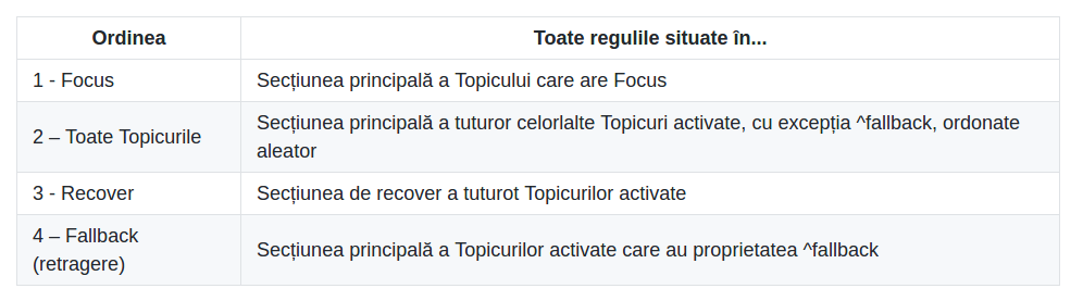 Toate Regulile unui Topic activat sunt activate, cu excepția situațiilor în care: